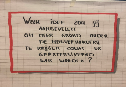 Deelnemers is gevraagd antwoord te geven op de vraag ‘Welk idee zou jij aanbevelen om meer grond onder de melkveehouderij te krijgen zodat er geëxtensiveerd kan worden?