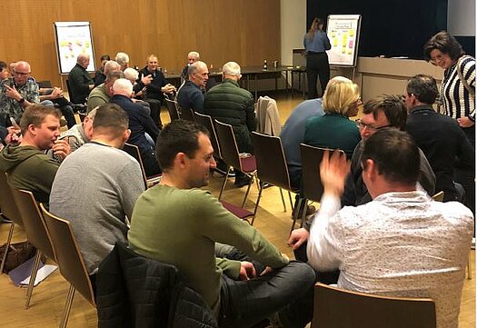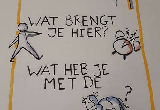 Na een korte introductie van de wethouder vond er een check-in plaats. Tijdens de check-in ronde ging de groep uiteen in kleinere groepen gebaseerd op de kraal die ze bij ontvangst hadden gekregen. Tijdens deze check-in werd genoemd wie de burgers in de zaal waren, wat ze naar de gebiedsbijeenkomst bracht en wat ze met de melkveehouderij hadden. Dit liep redelijk soepel. Persoonlijk was mijn groepje snel klaar met introduceren dus gaf ik ze wat ruimte om met elkaar te praten over het onderwerp. Er was een merkbare overkoepelend negatieve houding naar het Zon voor Melkvee initiatief. Toen ik het later checkte met anderen was dit ook geproefd door de andere check-in leiders.